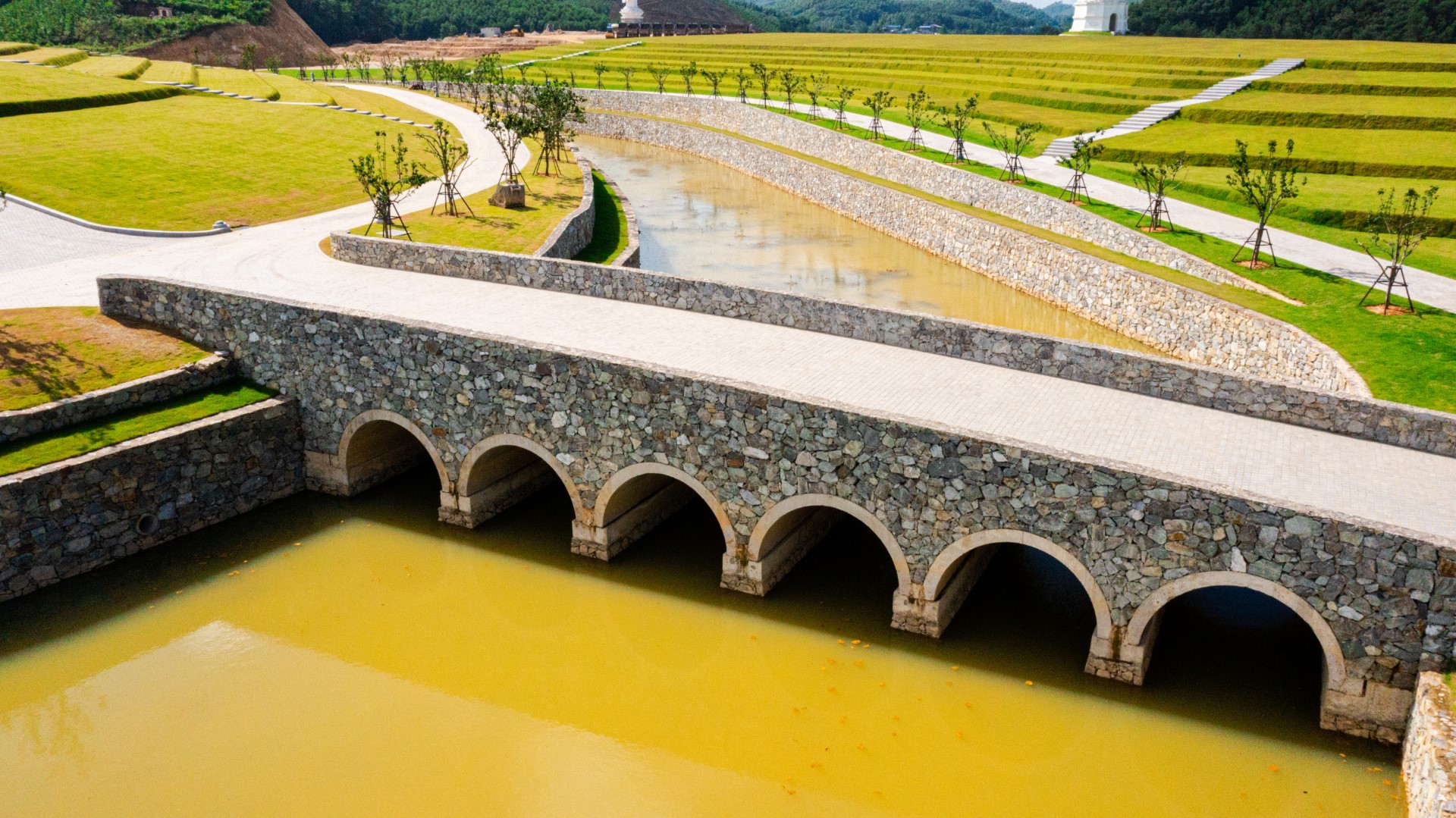Cầu Tịnh An: Bắc qua suối Báo Hiếu, nối trục Thần Đạo với đồi Thiên An - Nơi đặt tượng Phật Thích Ca Mâu Ni. Cầu Tịnh An mang ý nghĩa thanh tịnh và an yên.