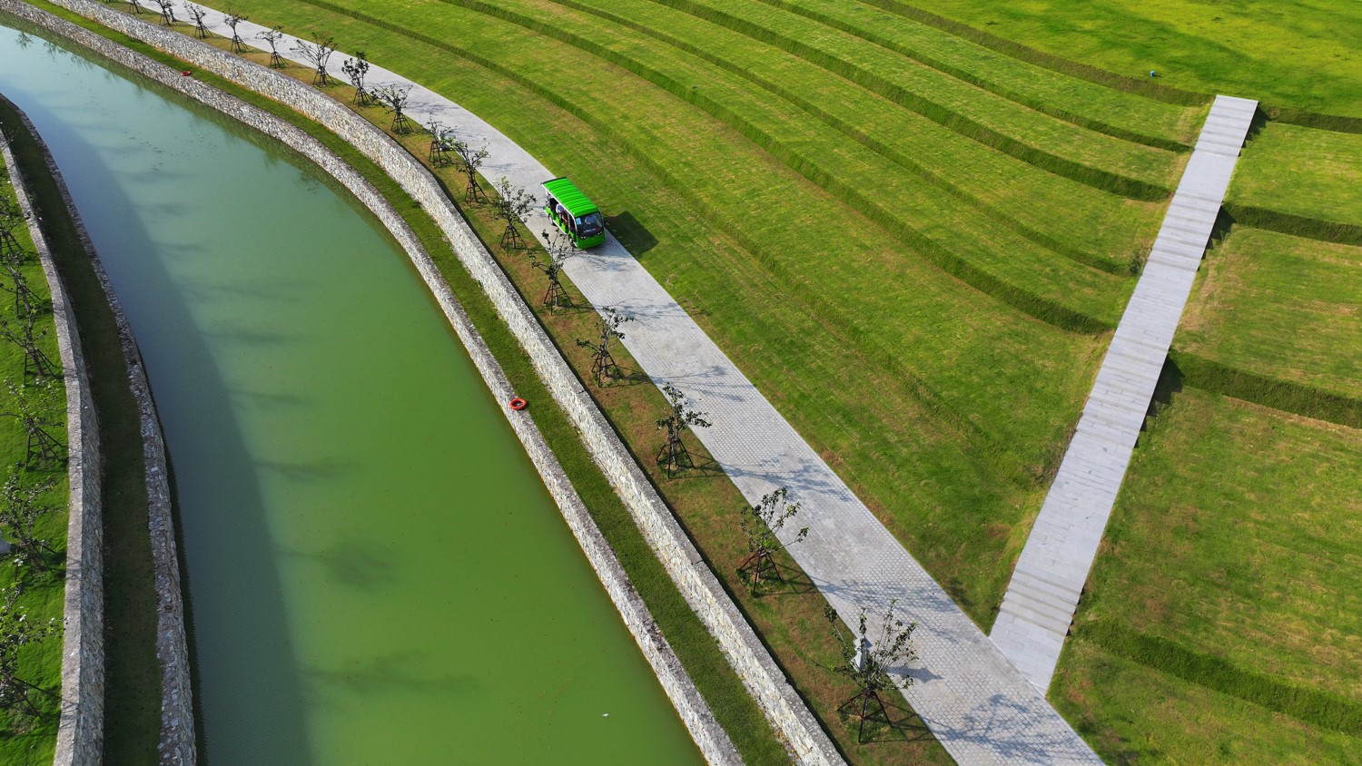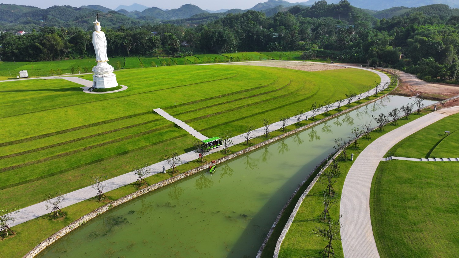 Từ núi Là, dòng suối ngọc hiền hòa uốn lượn chảy xuống thung lũng, mang theo linh khí đất trời về với Thiên Đường. Theo phân tích của chuyên gia phong thủy thì địa thế "thủy bao" với dòng suối bao bọc xung quanh công viên Thiên Đường uốn lượn vào bên trong lòng từng quả đồi tương tự như nguồn tài lộc đi vào bên trong và được lưu giữ, mang đến nhiều vận may và phú quý.