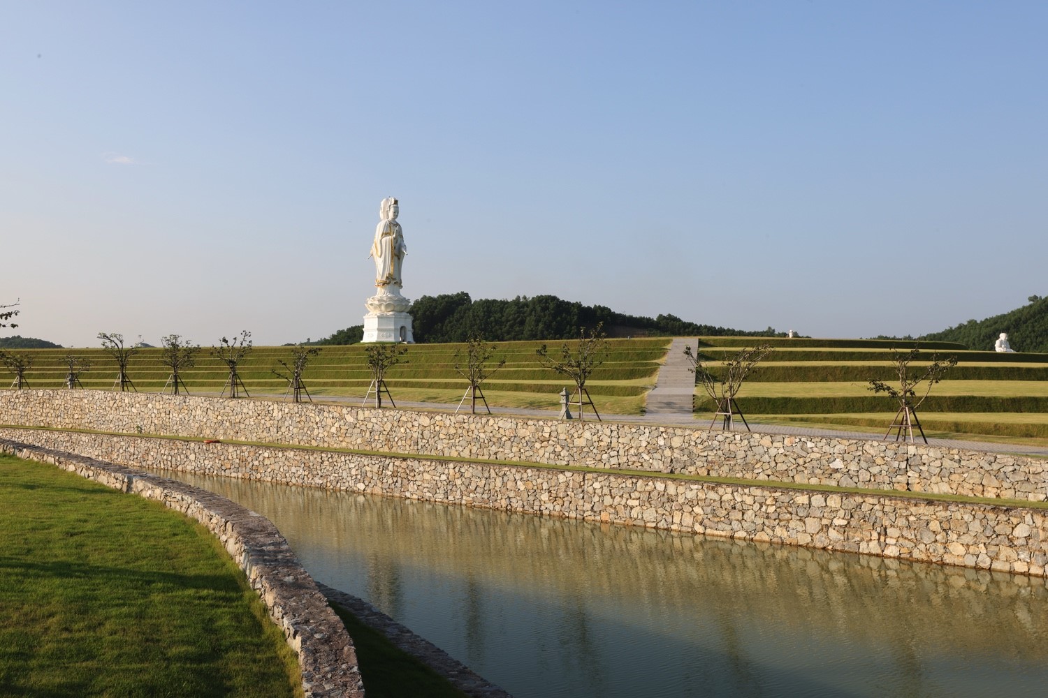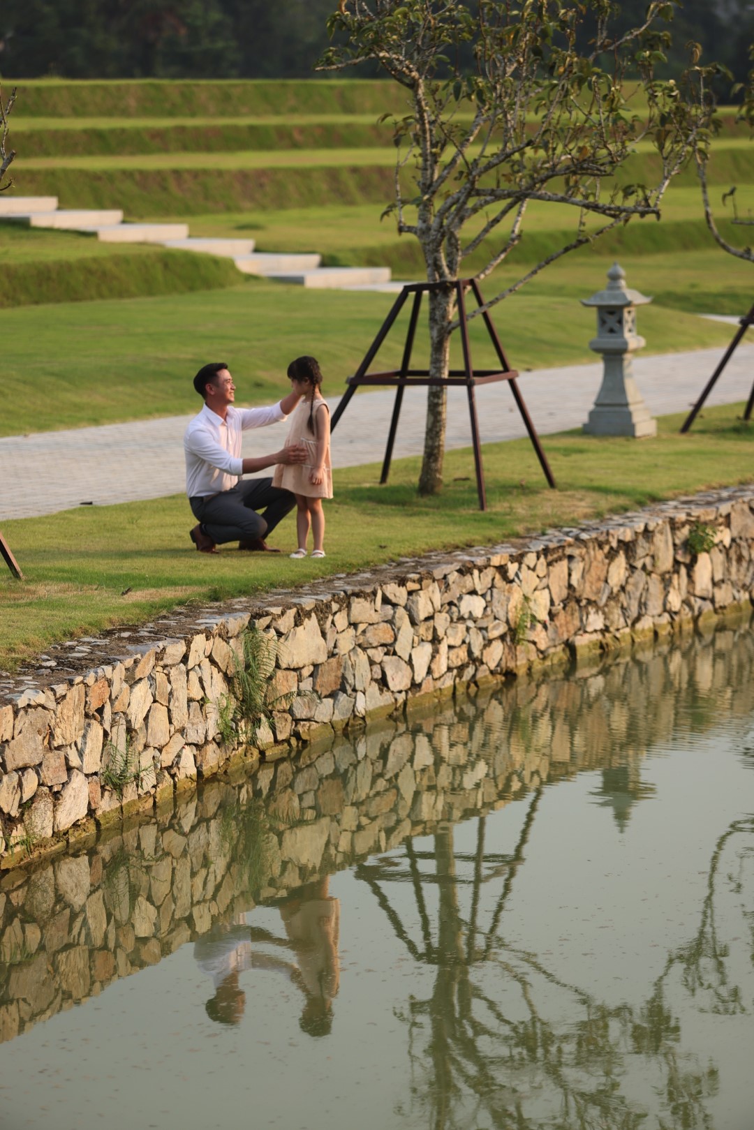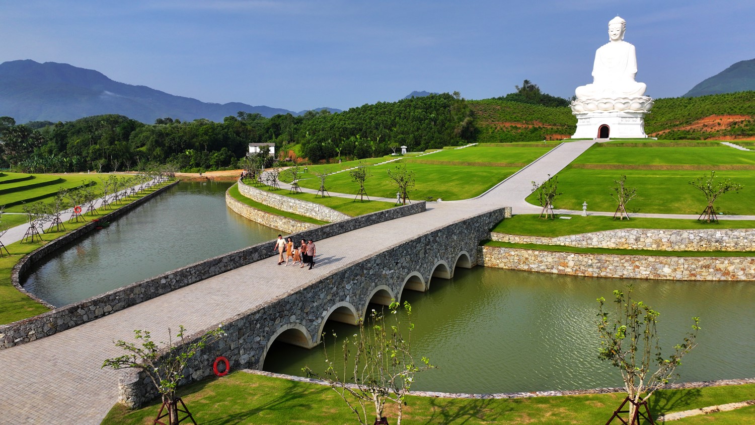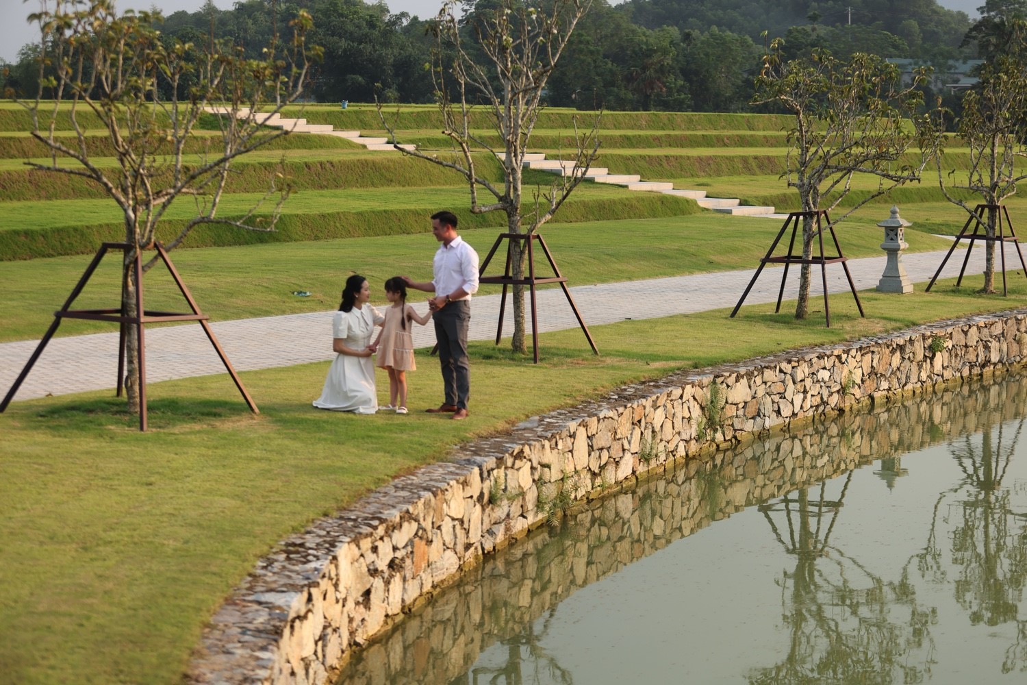 Từ núi Là, dòng suối ngọc hiền hòa uốn lượn chảy xuống thung lũng, mang theo linh khí đất trời về với Thiên Đường. Theo phân tích của chuyên gia phong thủy thì địa thế "thủy bao" với dòng suối bao bọc xung quanh công viên Thiên Đường uốn lượn vào bên trong lòng từng quả đồi tương tự như nguồn tài lộc đi vào bên trong và được lưu giữ, mang đến nhiều vận may và phú quý.